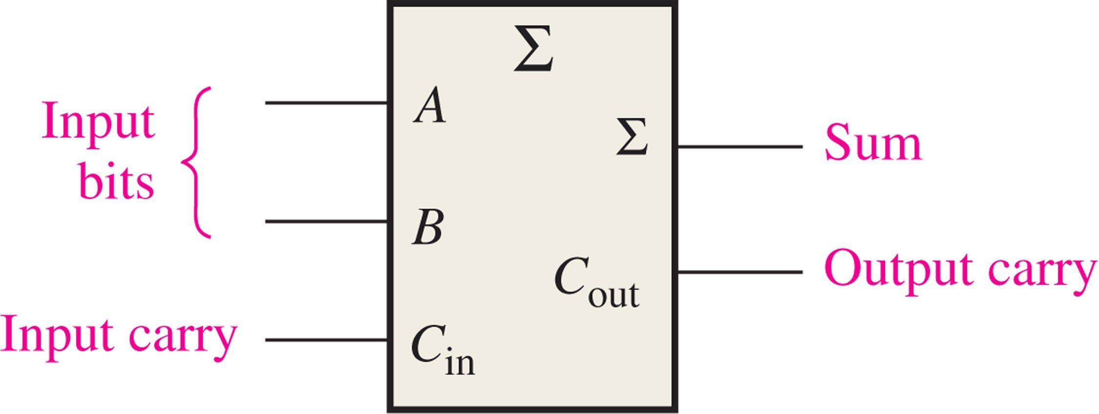 A full-adder sums three 1-bit values and provides two 1-bit values (sum and carry).