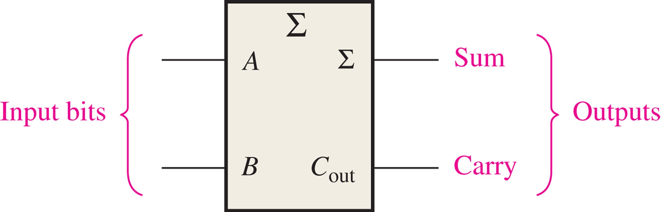 THING 1 Build a 1-bit half-adder circuit and verify.